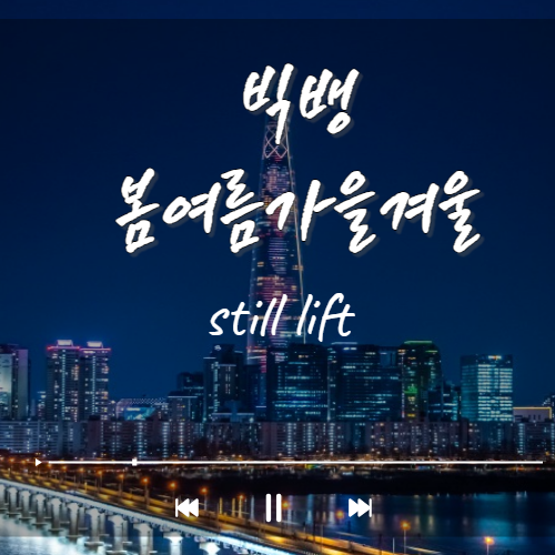 안녕하세요! 오늘은 여러분께 제가 요즘 가장 많이 듣고 있는 노래를 소개해 드리려고 해요. 바로 빅뱅의 '봄여름가을겨울 (Still Life)'이라는 곡인데요. 40대의 나이에 이 노래를 들으며 묘한 감동을 느꼈답니다. 며칠전에도 2024년 mama에서 컴백한 빅뱅의 모습을 보았는데요. 역시 레전드는 레전드더라구요. 혹시 여러분도 빅뱅의 음악을 좋아하시나요? 아니면 잔잔한 감성을 자극하는 음악을 찾고 계시나요? 그렇다면 제가 오늘 소개해 드리는 이 노래에 귀 기울여 보세요.